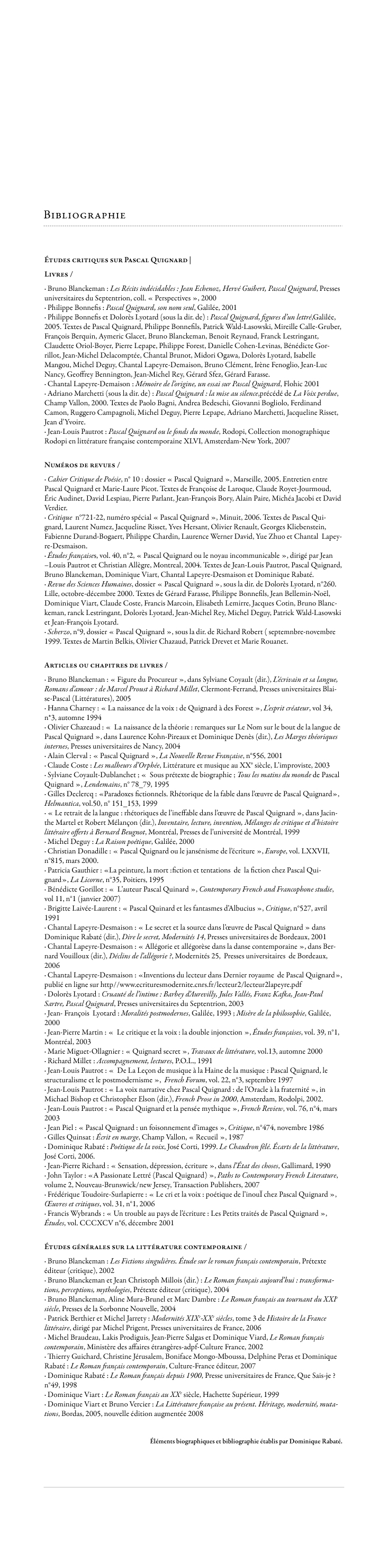œuvre de Pascal Quignard / études critiques sur Pascal Quignard / < retour au sommaire page suivante >